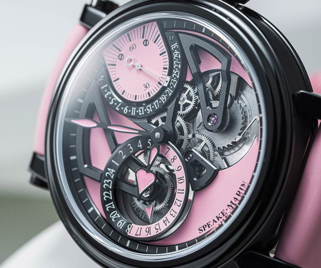 Британский стиль любит идти против приличий и в то же время играть с правилами. Где экстравагантность поддерживает классические предметы, оживляемые с помощью материалов, цветов и даже единственных в своем роде узоров. Новые ограниченные серии Speake-Marin , рожденные богатым воображением дизайнера Эрика Жиру, вдохновлены этим менталитетом. Часы Dual Time Pink в двух диаметрах, 38 и 42 мм, выпущены соответственно в количестве 10 и 28 штук. Обе версии цепляют взгляд, шикарный стиль сочетается с небрежностью через вездесущий розовый цвет жевательной резинки. Этот пастельный оттенок как таковой оттеняет корпус в стиле Пикадилли, изготовленный из титана Grade 5 и окрашенный в черный цвет, полученный с использованием обработки DLC (алмазоподобный углерод), создавая контраст.