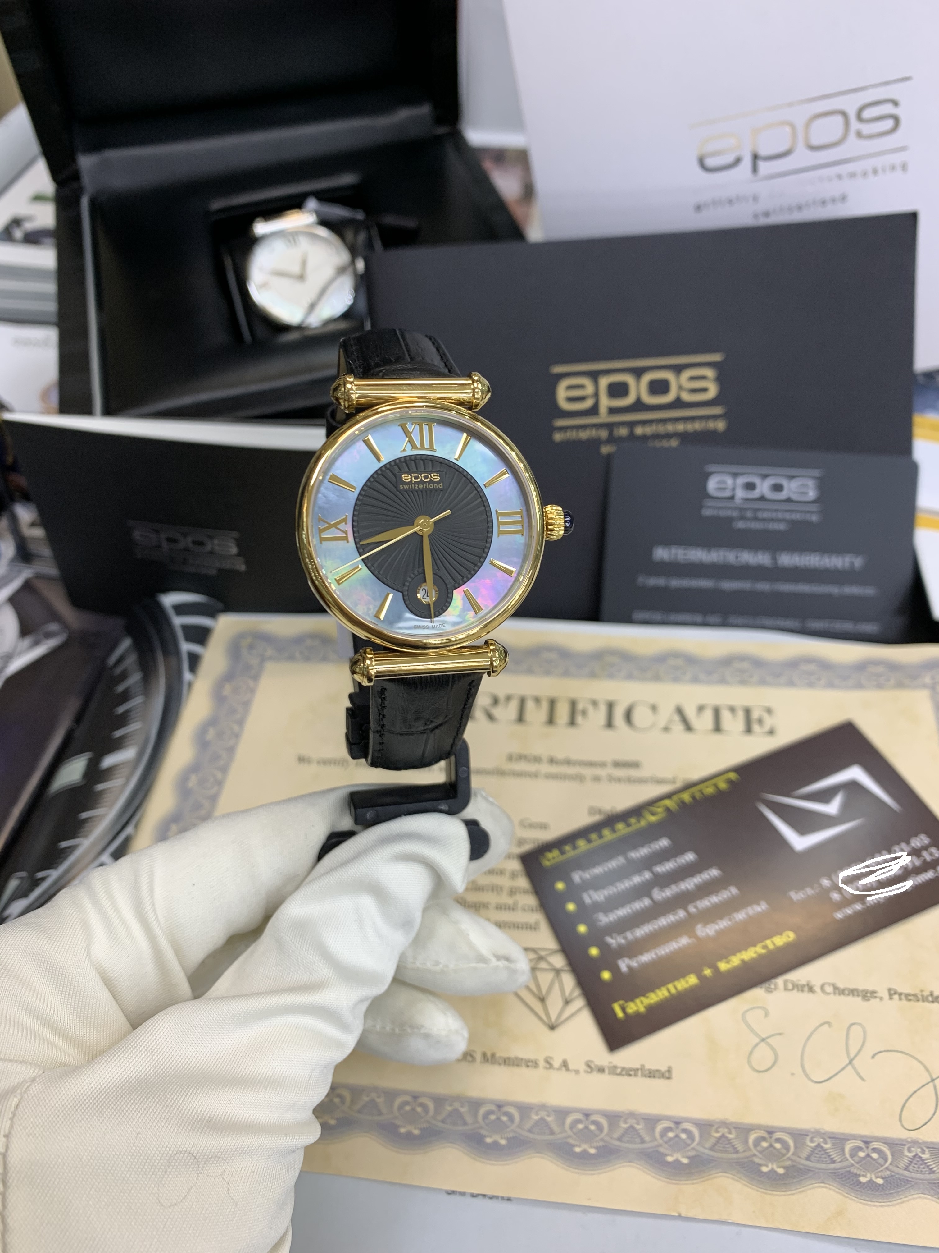 На все часы Epos, которые Вы приобретаете в салонах или интернет магазине Mystery Time, действует 2-х летняя международная гарантия производителя. В случае возникновения гарантийного случая, Вам необходимо обратиться по адресу, указанному в гарантийном талоне. Обращение в любой другой сервисный центр аннулирует Вашу официальную гарантию.